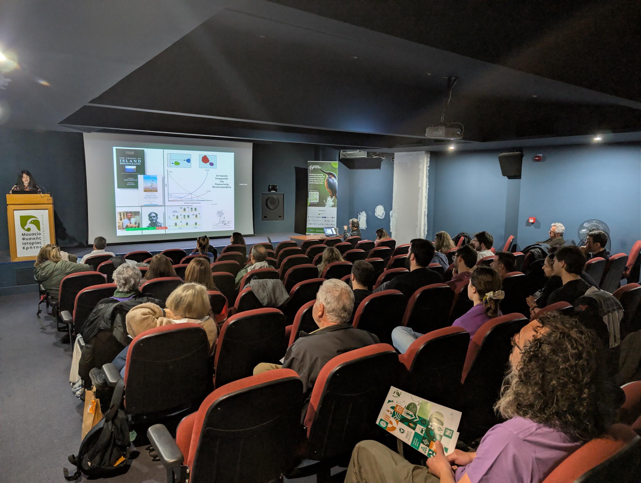 The programme featured an opening presentation by Assistant Professor Aris Moustakas (University of the Aegean), followed by a keynote by Dr. Emmanouela Karameta (Genomics and Genetic Resources Division, NHMC) on the importance of islands as centers of biodiversity and evolution. Associate Professor Evangelia Drakou (Harokopio University of Athens) also presented key insights from a previous stakeholder workshop in Athens, which contributed to the co-design of the Green Talent Roadmap.